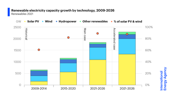 لەو ڕاپۆرتەدا ئاژانسەکە ئاشکرایکردووە، لە ساڵى 2021دا، تواناى جیهان بۆ بەرهەمهێنانى وزە لەڕێی هەوا، سۆلار و ئاوەوە بەجۆرێک گەشەى کردووە، ژمارەى پێوانەیی تۆمار کردووە، ئەوەشى بە ڕێگا ڕاستەکە ناوبردووە.