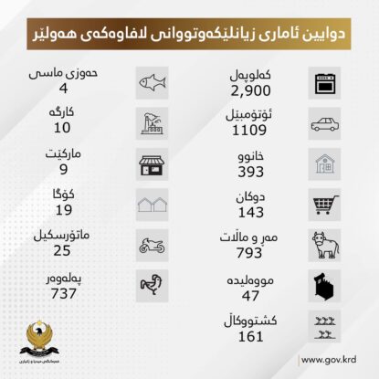 فەرمانگەی میدیا و زانیاریی حکومەتی هەرێم، دوایین ئاماری زیانەکانه لافاوەکەی هەولێری ئاشکرا کرد.