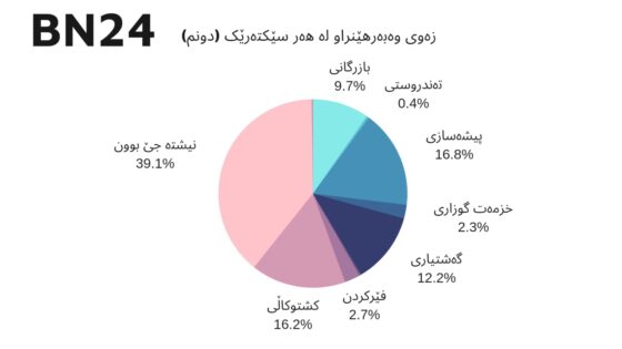 کۆى گشتیی ئەو ڕووبەرە زەوییەى بۆ وەبەرهێنان لە هەرێمى کوردستان لەو ماوەیەدا تەرخان کراوە، بریتی بووە لە 72 هەزار و 898 دۆنم زەوى لە سەرانسەری هەرێمى کوردستان.