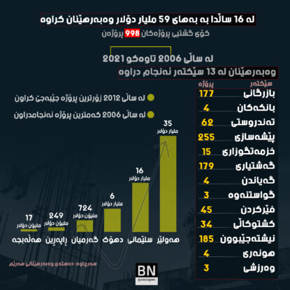 هەولێر، 449 پرۆژە بە بەهای زیاتر لە 35 ملیار دۆلار