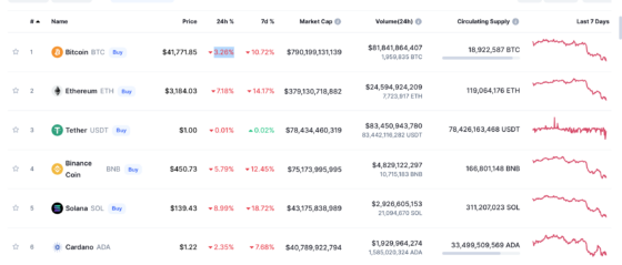 بەڵام ئەو دۆخە تەنها ڕووى لە بیتکۆین وەک گەورەترین دراوى ئەلیکترۆنى نەکردووە، بەڵکو یەکەم تاوەکو شەشەمى ڕیزبەندیی گەورەترین دراوە ئەلیکترۆنییەکان، هەمان دۆخیان هەیە.