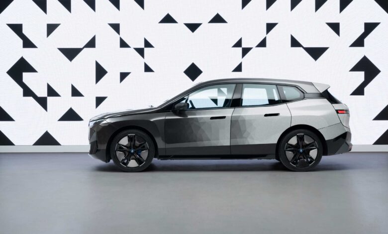 ئۆتۆمبێلى iX، خاوەنى ڕوپۆشێکە کە ڕەنگەکانى دەگۆڕدرێن و لەڕێی کارەباوە کار دەکەن.