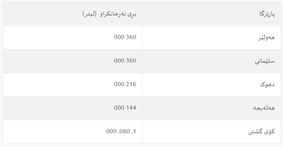 خشتەی خوارەوە بڕی دیاریکراو هەر پارێزگایەک دیاری کردووە؛