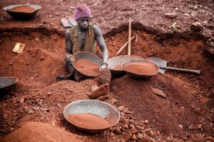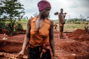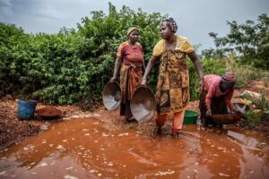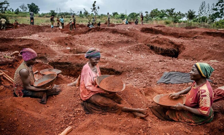 کرێکارانی کانەکانی دەرهێنانی زێڕ، سەرقاڵی گەڕانن بەدوای زێڕدا لە ناوچەی موجۆسۆ لە تەنزانیا.