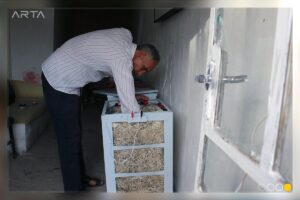 مامۆستایەکى خانەنشین لە قامیشلۆى ڕۆژئاواى کوردستان، لە داهێنانێکیدا، دەیەوێت بە وزەى خۆر ماڵەکان فێنک بکاتەوە.