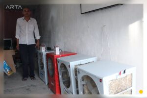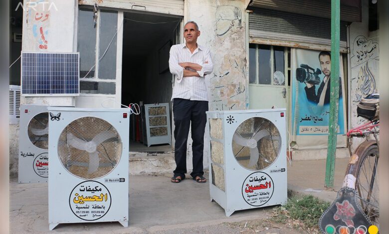ئەو فێنککەرەوانەى محەمەد ساڵح، لەپاڵ ئەوەى بە وزەى خۆر کار دەکەن، بە باترییەکى بچوکیش کار دەکەن.