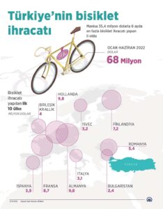 تورکیا لە نیوەى یەکەمى ئەمساڵ، بە بەهاى 68 ملیۆن دۆلار، بایسکیلى هەناردەى دەرەوە کردووە.
