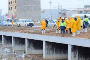 گەورەکردنی کەند و ڕێڕەوە ئاوییەکانی گەڕەکی ڕۆشنبیری، ناحیەی قوشتەپە و دارەتوو، لەلایەن تیمەکانی وەزارەتی شارەوانی و گەشتوگوزار.